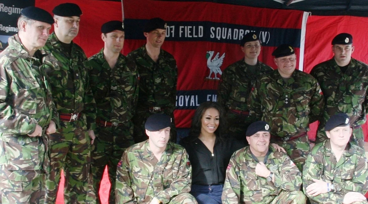 X Factor finalist and local girl Rebecca Ferguson with Army volunteers on the Toxteth site.